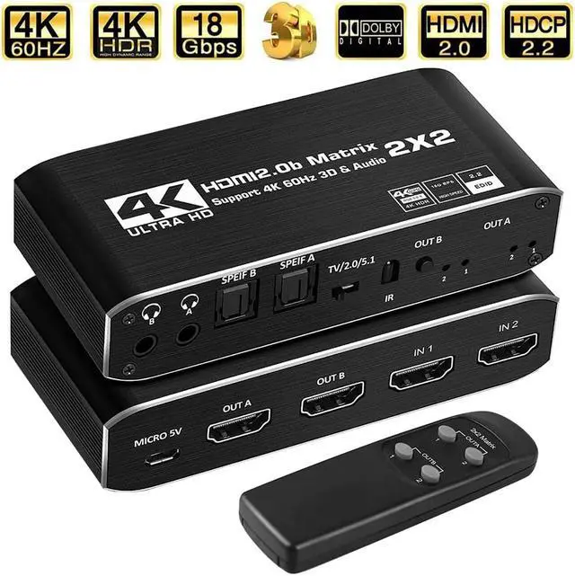 4K@60Hz HDMI Matrix Switch 2 in 2 Out