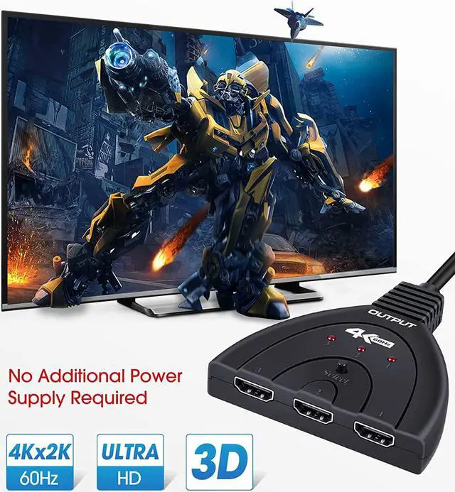 - Package Included: 4K@60Hz HDMI switcher three port with pigtail cable (50cm) x 1, User manual x 1. HDMI switch box is the best choice for your work and home, and can be widely used in offices, backyards, living rooms, etc. Reduce the plug and unplug, thereby reducing the wear and tear of the equipment. Let's enjoy the one-click quick switch between work and game with our 3 ports HDMI selector switcher.