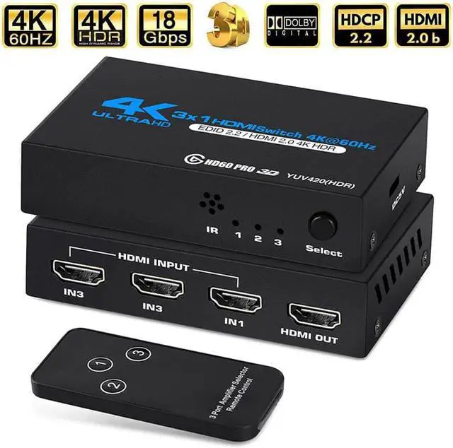 - YOU WILL GET: 1*HDMI 2.0 Switcher +1*Remote control+1*User Manual. HD Audio and HDCP Compliant- Audio Formats: LPCM, DOBLY AC3,DTS7.1,Direct Stream Digital. No distortion of audio or video, no delay in signal transference. And come with one year After-sale service and you will always get friendly support.