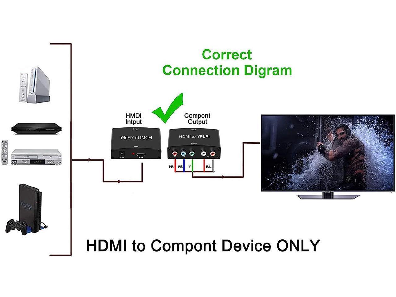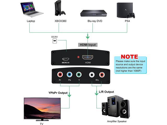 HDMI to Component Converter HDMI to YPbPr Component 5RCA RGB Adapter Support 1080P, HDMI Converter for Apple TV, PS3/PS4, WII, Xbox, Fire Stick, Roku, DVD Players ect (HDMI to Ypbpr)