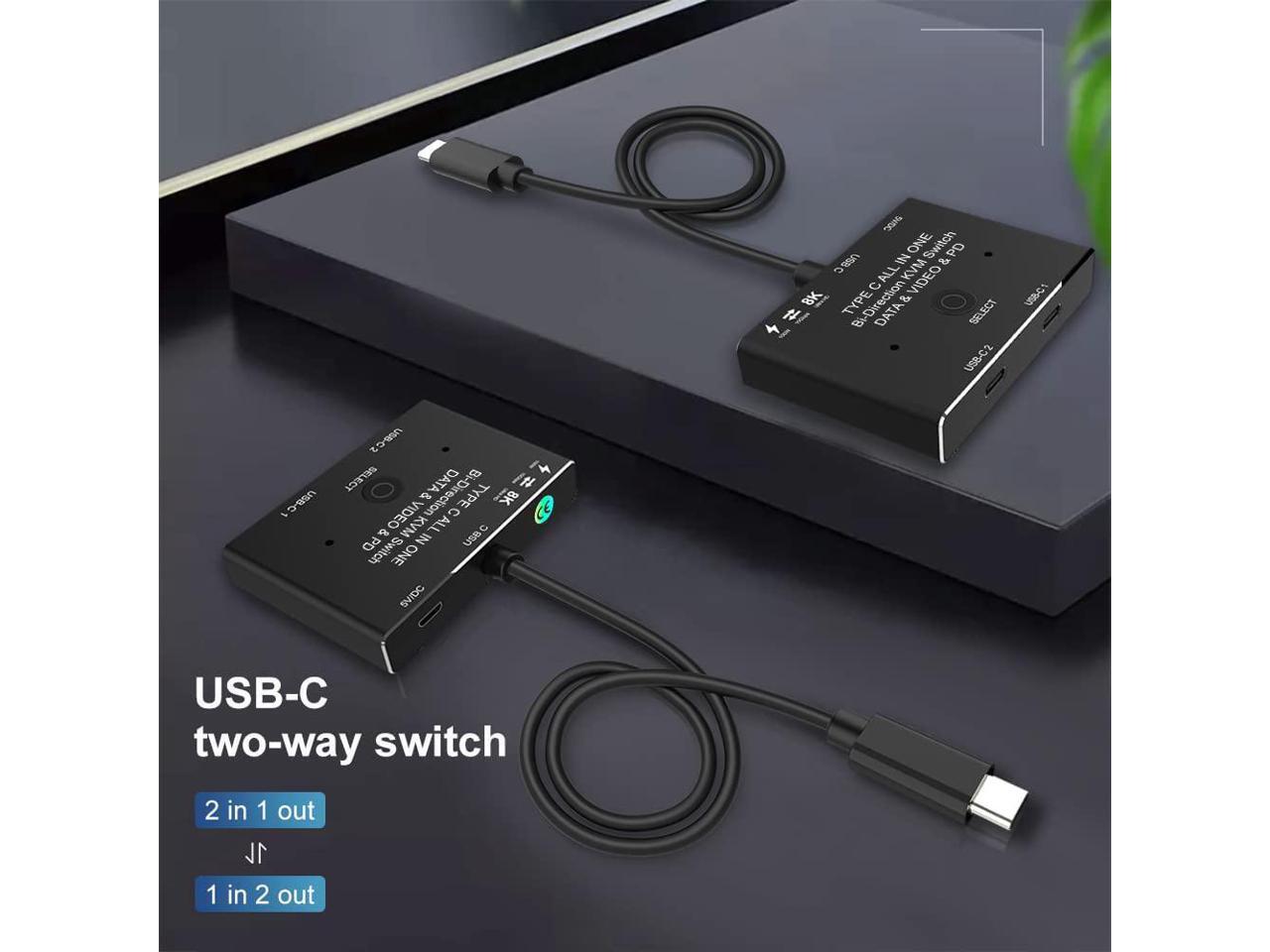 USB-C Type-C Bi-Direction KVM Switch, 2 in 1 Out/1 in 2 Out USB C Switcher 2 Computers Support Video Data PD 8K@30hz 100W 10Gbps Compatible with Thunderbolt Device