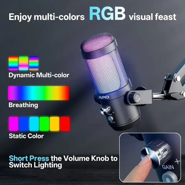 ?Every time the mic powers up, it goes to its default RGB mode. To switch the lighting off, press down the GAIN knob repeatedly until you reach the 'off' mode.