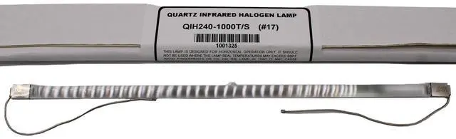 Ushio 1001325 1000 Infrared heater lamp provides clean, instantaneous and precision controlled heat for use in applications such as baking, drying, curing, dehydrating, warming of foods and general area warming. Infrared heater lamps are available in a variety of base configurations and design alternatives, including segmented lamps for uniform heating, coated lamps for better directional efficiency, and special filament designs for medium wave lamps.