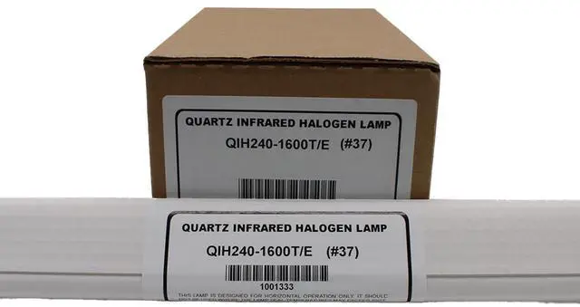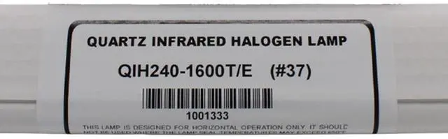 Ushio 1001333 1600 Infrared heater lamp provides clean, instantaneous and precision controlled heat for use in applications such as baking, drying, curing, dehydrating, warming of foods and general area warming. Infrared heater lamps are available in a variety of base configurations and design alternatives, including segmented lamps for uniform heating, coated lamps for better directional efficiency, and special filament designs for medium wave lamps.