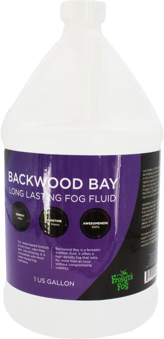Backwood Bay® is an extremely long lasting fog juice and the most popular formula in the Froggys Fog Designer Select Series. Hang times 2-3x longer than our Techno Fog, this solution produces a perfect fog while remaining clean, dry, and odorless.