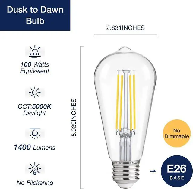 Dusk to Dawn, Easy to Install, Sunlight Sensor, NON Dimmable