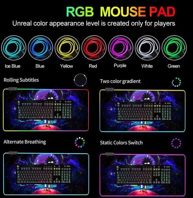 Visually appealing big mouse pads that will accommodate different users' needs.The RGB effect can add color to your desktop, bring a cool gaming experience, and give your gaming/work a new experience.