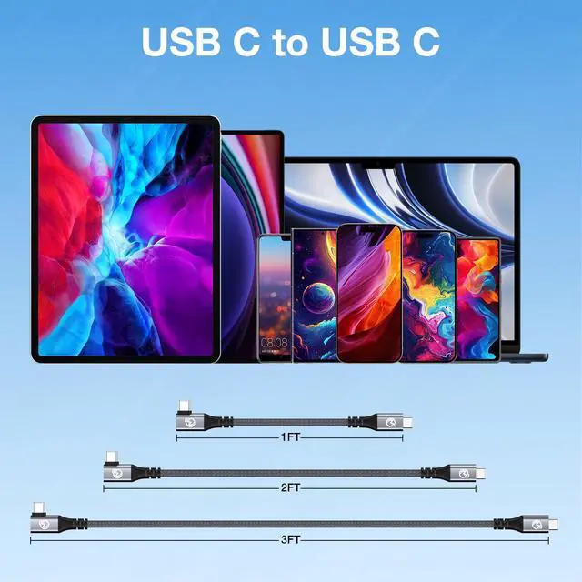 90 Degree Design USB C 3.2 Gen 2 Fast Charging Cable