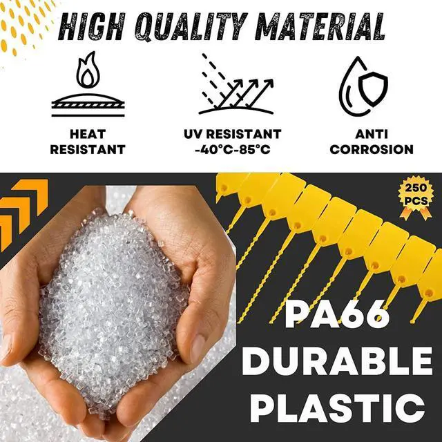 *High Quality Material: Made of high quality materials-PA66 resin in Taiwan. The durable security plastic strap gives the seal enough strength to match different occasions.