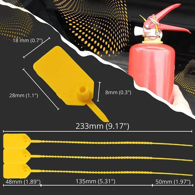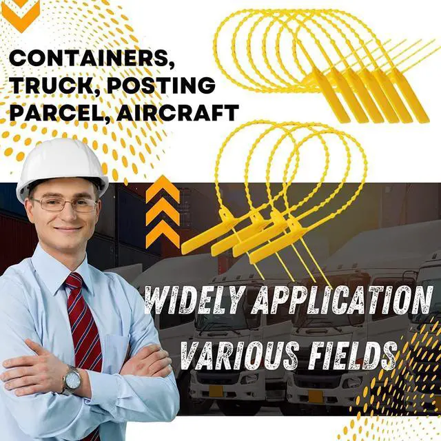 *Multi Purpose: Wide applications for fire extinguisher, airline cargo, bank and postal, courier services, clinical waste management, warehouses, fire safety, dining car, luggage apparel, logistical service, valves voting box, hanging clothing, shoes bags to prevent stolen, garden forest trees, hospital piping, box. Label, sealing tape, cable tie, energy measurement, container seal, cash box and other applications requiring high pull strength.