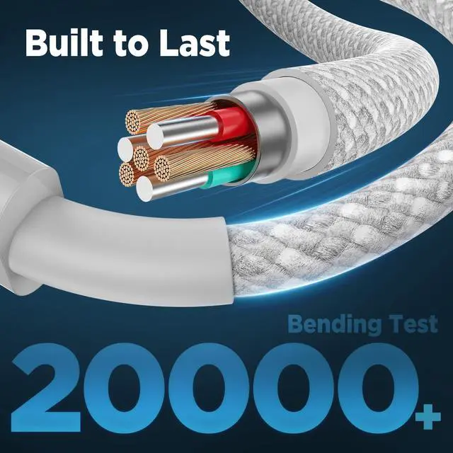 Lasts 30x longer than ordinary TPE proven in a laboratory environment to withstand 20000 bends, resulting in a longer lifespan compared to ordinary TPE fast charging cord type c.