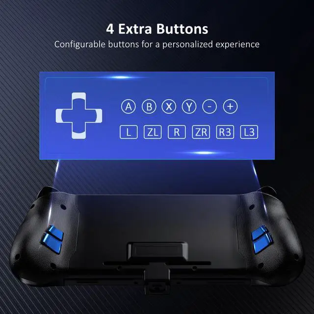 2 back buttons can replace 16 front buttons, supporting various mapping options.