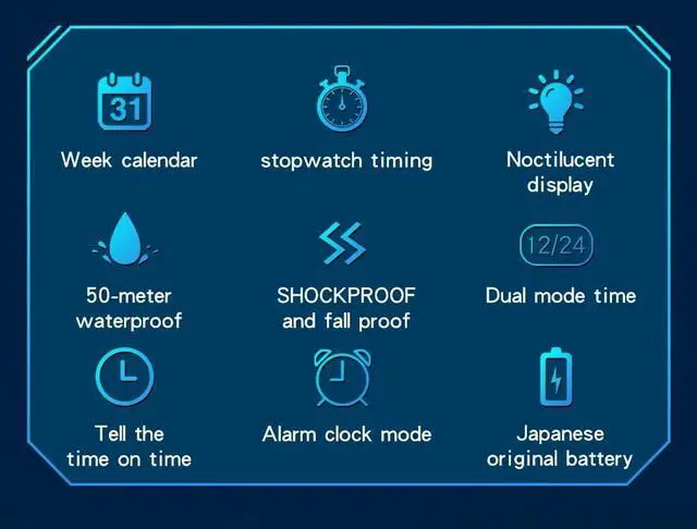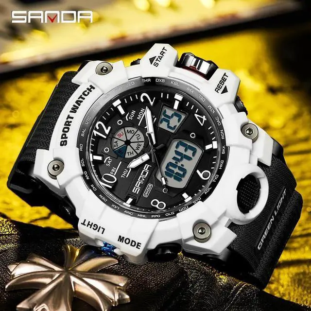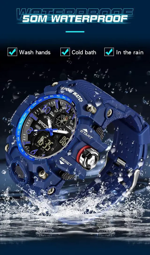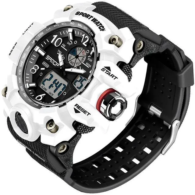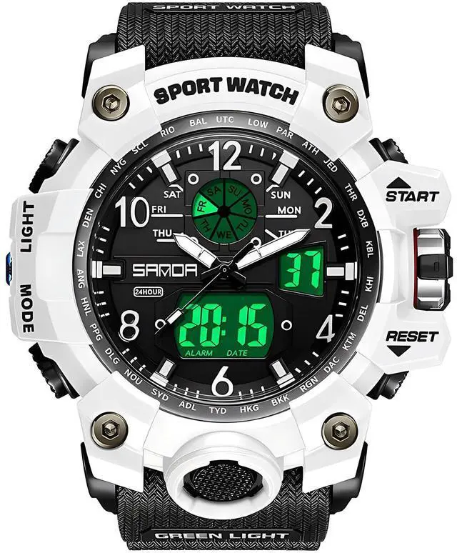 Military Style Digital Analog Watch, Large Face 2.2", 50m Water Resistant, Dual Time Zone, Alarm, LED Backlight, Stopwatch, PU Strap