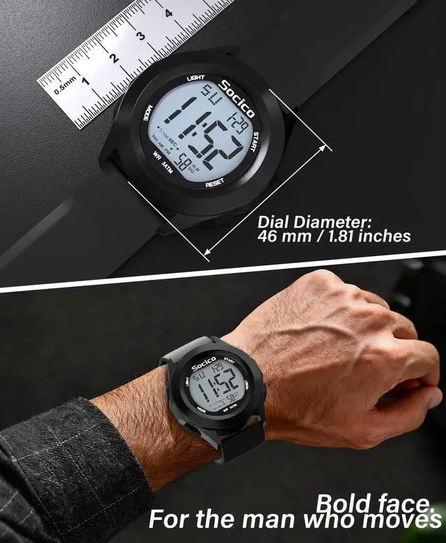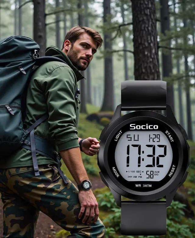 Step into the world of rugged functionality with this digital sports watch that combines military-inspired design with practical features. The large face display ensures excellent readability in any situation, while the robust construction makes it ideal for outdoor activities. This watch comes equipped with essential features including a precise stopwatch for timing, a convenient back light for low-light visibility, and a clear date display to keep you on schedule. The waterproof design lets you wear it confidently during various activities without worry. Whether you're hitting the gym, going for a run, or embarking on an outdoor adventure, this watch delivers reliable performance. The bold, tactical appearance makes it a standout accessory for both casual and active wear. Multiple alarm settings help you stay punctual, while the durable build ensures it can handle your daily activities with ease. The comfortable band and intuitive button layout make it simple to access all functions on the go.