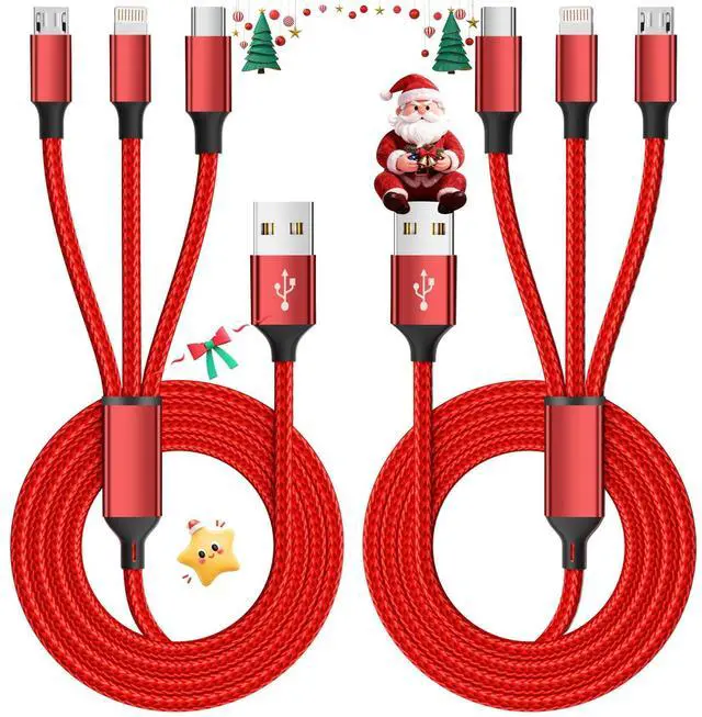 2pcs 4FT * 3 in 1 Red cables Multi Charging Cables,2Packs Multi Charger Cable Nylon Braided Multiple USB Cable Universal 3 in 1 Charging Cord Adapter with Type-C, Micro USB Port Connectors for Cell Phones and More Special Design Multi Charging Cable One cable = three charging cables,The design is very compact, small and lightweight, charging your device anytime, anywhere. Compatible with most of the mobile phones available on market.High-Quality Copper Core ensures your devices charging. Perfect Length 4ft is perfect length for a charging cable for long distance use. Ideal for charging anywhere, provides you a moving around the house while charging on a wall adapter. Superior Durability A tough nylon exterior resists damage from the outside, while the cable's interior is precision-designed to handle thousands upon thousands of bends. Universal Compatibility: The Type C port: Compatible with type c supported devices. The Micro USB port: Most Android and Windows phones, tablets and many other devices. The iphone connector can be use for IOS phone. Warm tips: 1. These usb cables only for charging, not support data transmission and quick charge. 2. Please use at least 2A USB power adapter when charging pad or multiple devices. Package: 2pcs on one bag