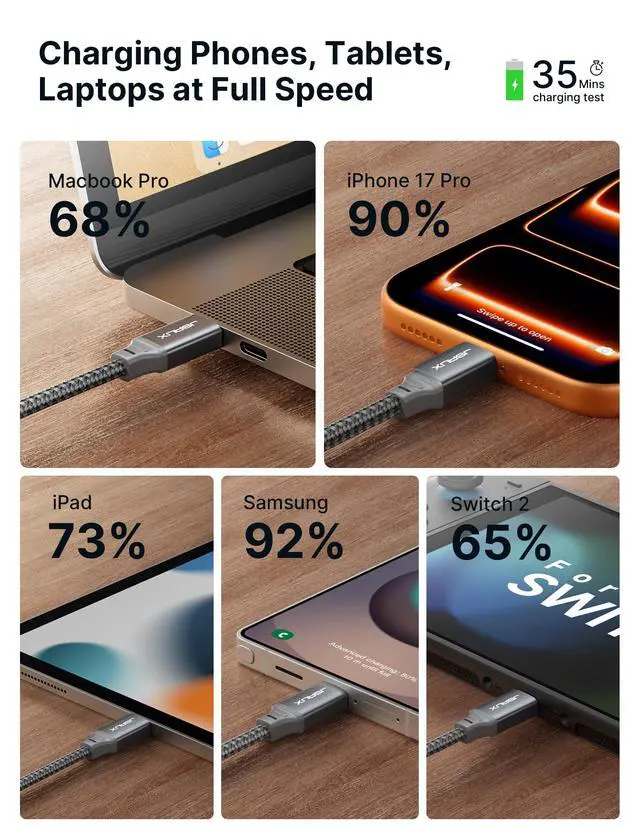 ![Alt view image 7 of 7 - 100W USB C to USB C Cable [2-Pack 6.6FT], Type C Fast Charging Cord Compatible with iPhone 17/iPhone Air/iPhone 17 Pro/iPhone 17 Pro Max, iPhone 16/15 Series, Galaxy S/Note, MacBook, iPad - Grey](https://c1.neweggimages.com/productimage/nb640/C47HD2603160993XIC1.jpg)