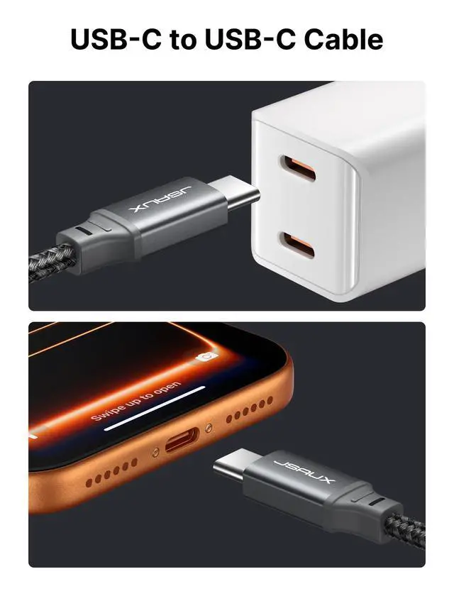 ![Alt view image 4 of 7 - 100W USB C to USB C Cable [2-Pack 6.6FT], Type C Fast Charging Cord Compatible with iPhone 17/iPhone Air/iPhone 17 Pro/iPhone 17 Pro Max, iPhone 16/15 Series, Galaxy S/Note, MacBook, iPad - Grey](https://c1.neweggimages.com/productimage/nb640/C47HD2603160993QM1C.jpg)