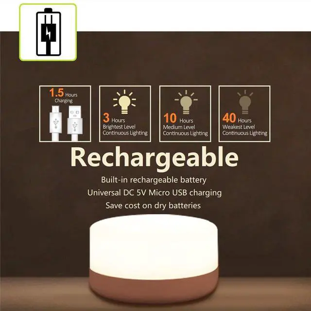 This rechargeable LED touch light is perfect on diaper changing table or crib as breastfeeding nightlight or baby nursery night light to nursing the newborn; As bedside safe light for kids and adults; Suitable for bedroom, nursery, toddler's room, living room, or even as in-tent camping lamp, decorative mood light, table lamp.