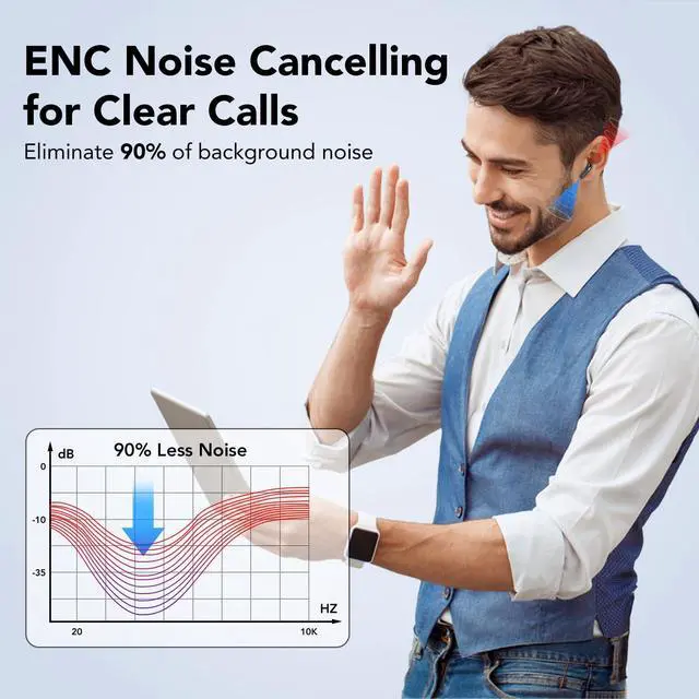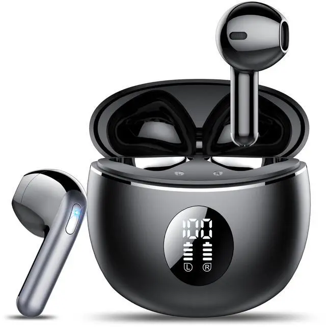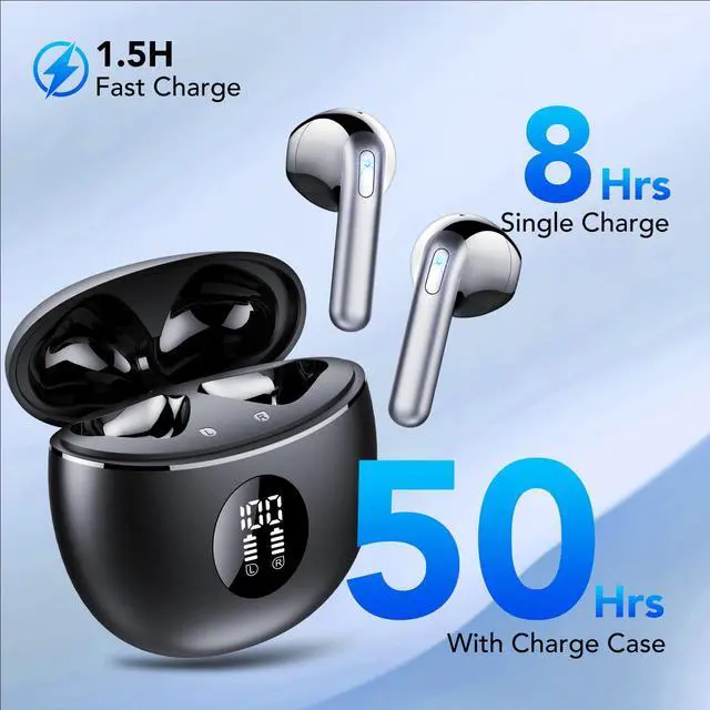 Wireless Earbuds, Bluetooth Headphones 5.4, 50H Playtime LED Display Deep Bass Ear Buds with 4 ENC Noise Cancelling Mic, IP7 Waterproof in-Ear Earphones for Phone Tablet Laptop Sports, Phantom Black