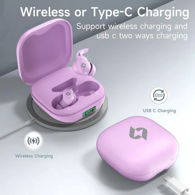 The Bluetooth earphones has two charging methods, support USB-C and wireless charging fast charging, you can choose one of them you think more convenient way to charge.wireless Bluetooth earbuds provides a new experience, and an excellent ergonomic design.Wireless Bluetooth earbuds are small and lightweight, and will not burden your ears, Bluetooth headphones are more suitable for your ears.
