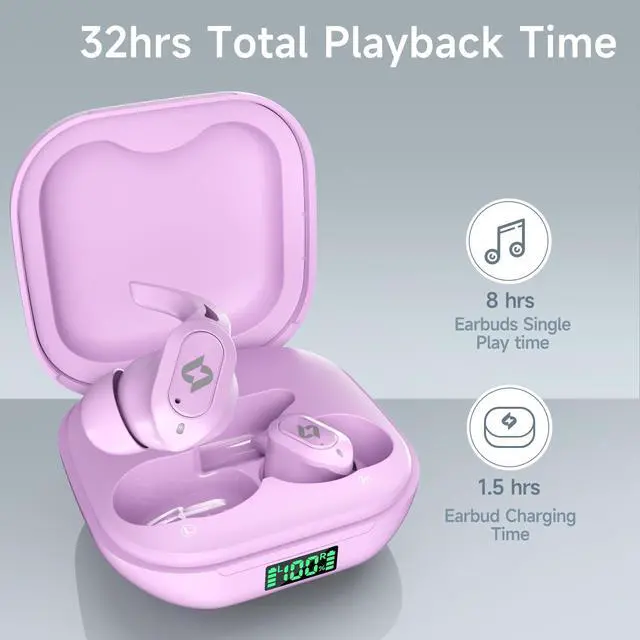 The Bluetooth wireless earbuds is equipped with a convenient fast charging casefacilitates easily manage of power, and the 500mAh battery capacity of the charging case provides 3 full charges for both 45mAh earbuds, each lasting play to 8 hours on a single charge. hence by taking turns, true wireless earbuds can keep up with your rhythm for 32 hours long.