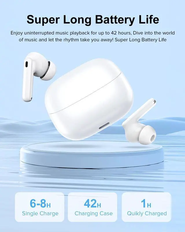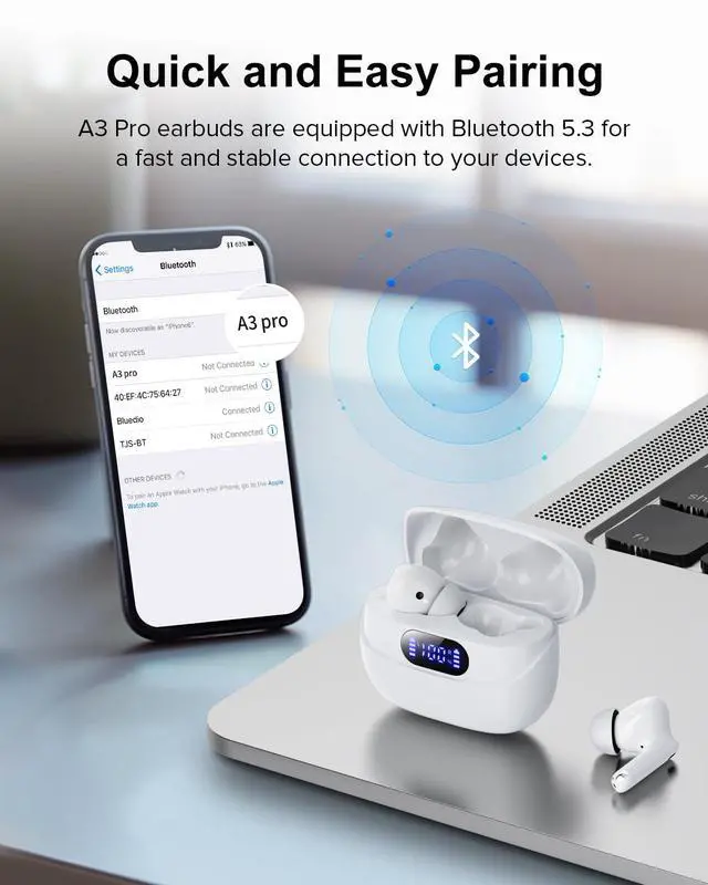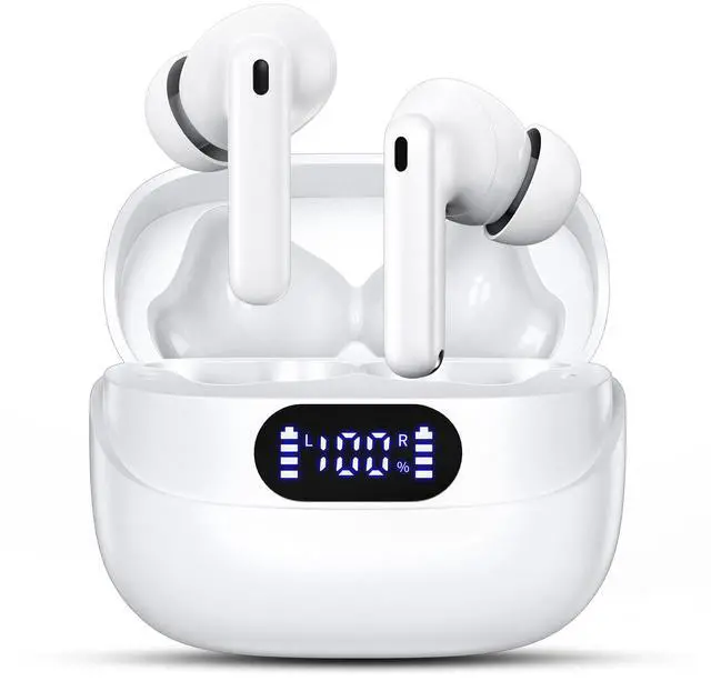JAYSUING Wireless Earbuds, 40H Playtime Bluetooth 5.3 Headphones, HIFI Stereo Call Noise Cancelling Earbuds, IPX7 Waterproof Earphones with LED Display for Android IOS