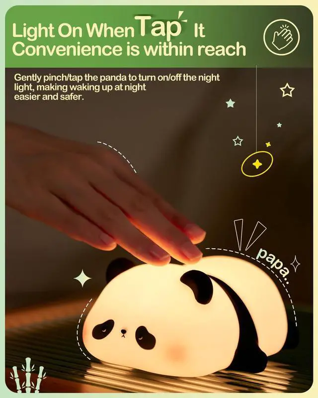Introducing the JAYSUING Panda Night Light for Kidsa delightful and enchanting addition to any child's room! Crafted from food-grade silicone, this adorable night light not only ensures safety but also provides a soft, soothing glow that creates a comforting atmosphere for bedtime.