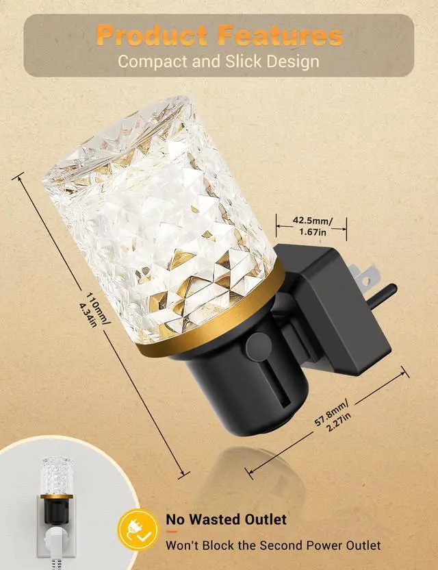 Auto On/Off Light Sensor: Equipped with a dusk-to-dawn light sensor, this night lights plug into wall automatically turns on at dusk and off at dawn, providing convenience and energy efficiency.