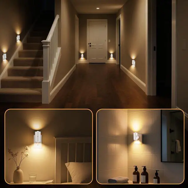 Illuminate your living space with these sleek, modern LED night lights that seamlessly blend into any wall outlet. The built-in dusk-to-dawn sensor automatically activates the light when darkness falls and turns it off at sunrise, providing convenient, hands-free operation. With adjustable brightness from 0 to 200 lumens, you can customize the perfect amount of soft white 3000K illumination for your space. These versatile night lights are ideal for hallways, bedrooms, stairways, or any area requiring gentle ambient lighting. The pack of six lights allows you to create consistent lighting throughout your home. The dimmable feature lets you set the perfect brightness level for different times and needs, whether you want subtle guidance lighting or brighter task lighting. Their modern design complements contemporary decor while providing practical functionality. These plug-in lights offer an energy-efficient solution for nighttime visibility and safety.