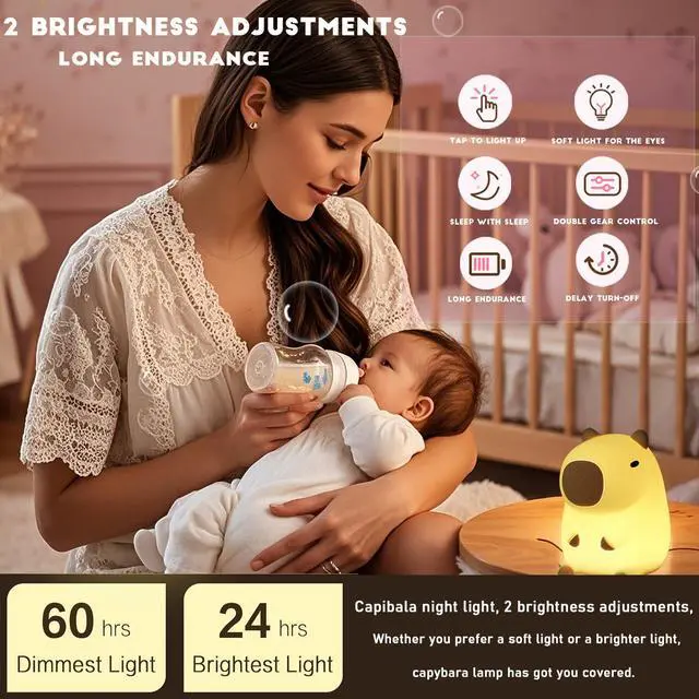 Squishy Capybara Night Light,Funny Cute Capybara Lamp, 2 Levels Dimmable LED Novelty Animal Night Lamp,Light Up Capybara,Rechargeable Touch Lamp, Dorm Decor, Baby Boys Girls Gifts