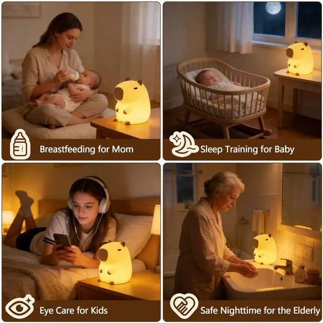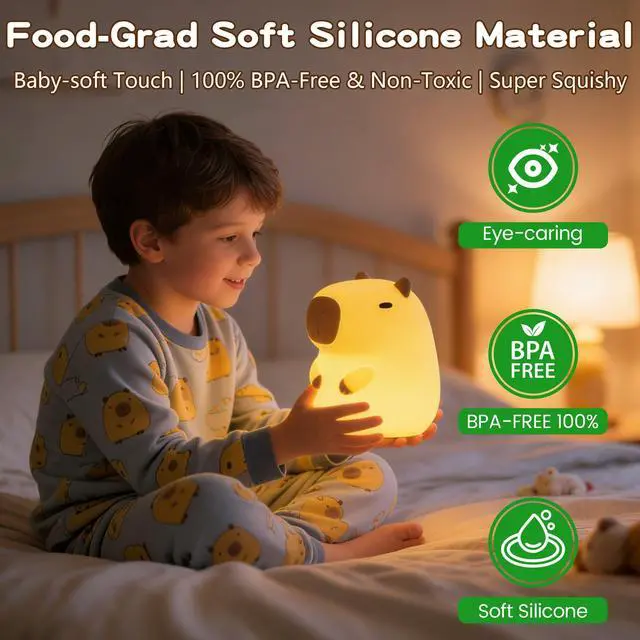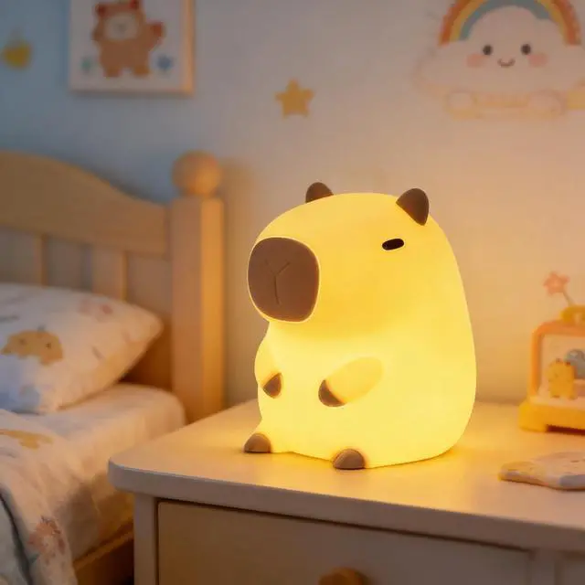 Discover the JAYSUINGnovelty Capybara nightlight, ideal to bring comfort and safety to your baby. Made of bpa-free silicone, it is perfectly safe for your child. It has touch control to switch from 3 intensities of light. Its adjustable timer allows your child to fall asleep quietly. The night light can also be used as an object of light decoration, whether for the bedroom or on the go. Soft and flexible shape, this nightlight is suitable for children of any age and can also be used as a pressure resistant toy. It is equipped with a large capacity battery rechargeable by USB for autonomy up to 6 hours. The JAYSUING nightlight is the perfect gift for any special occasion. Give your child a soft and reassuring light for peaceful nights. Order your JAYSUING nightlight now.