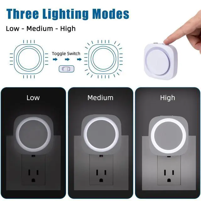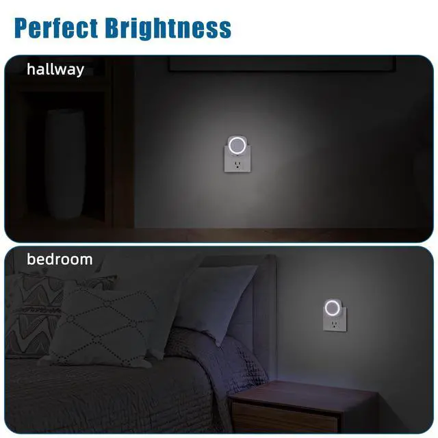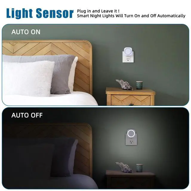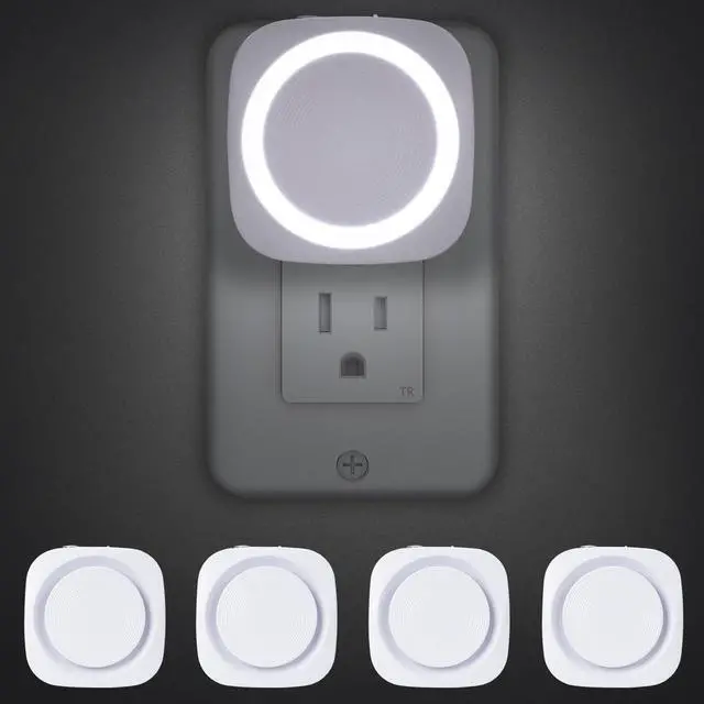 White Night Lights Plug into Wall, 4 Packs Dimmable Night Light with Dust to Dawn Sensor, Automatically Turn on and Off, Gentle Glow Nightlight for Bathroom,Bedroom,Stairs,Kitchen,Hallway,White