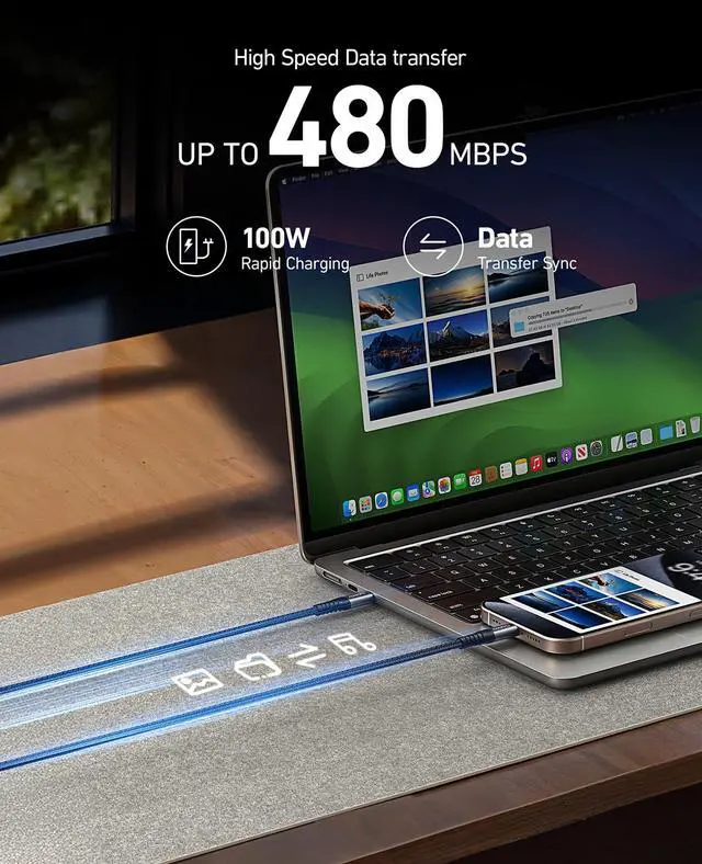 USB C Cable 3A Fast Charging and SyncExperience 3A fast charging with our usb to usb c cable 15ft, the charging speed is up to 5V/3A, 25% faster compared with other cables which provide 5V/2.4A output. The data transmission is up to 480Mbps, efficiently transferring music, files, pictures and videos in short time.