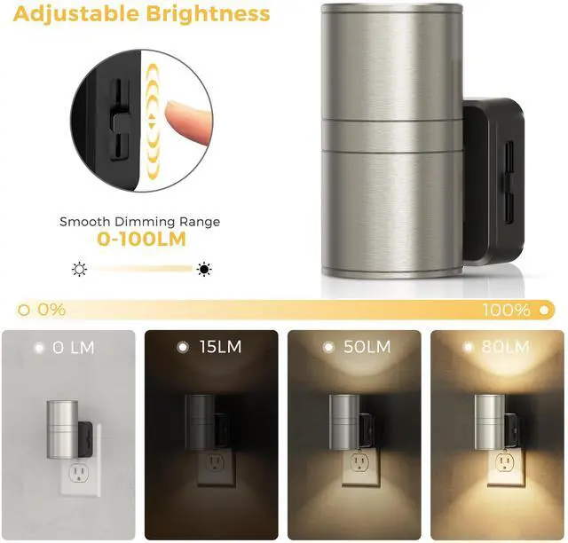 ![Alt view image 5 of 7 - JAYSUING Night Light, Dimmable Night Lights Plug into Wall,[1 Pack] Metal-Shade Nightlight for Adults, Automatic Nightlights, Light Sensor,Soft White 3000K, Nightlight Plug in for Hallway Bedroom](https://c1.neweggimages.com/productimage/nb640/C47HD2603020ARV5559.jpg)