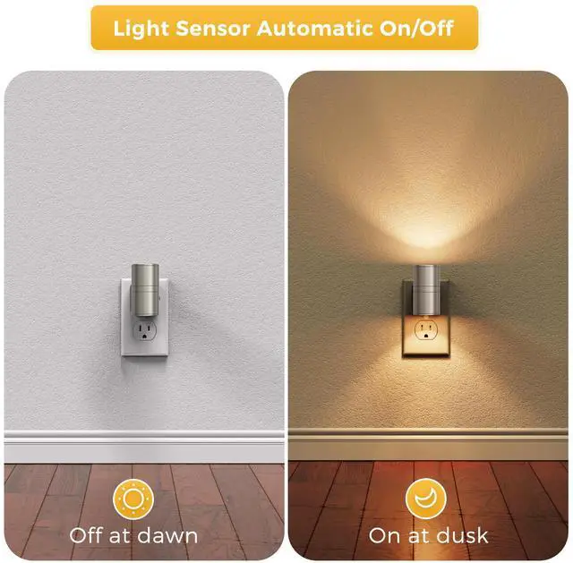 With dusk to dawn technology, the plug in night light can auto turn on in the dark and auto turn off in the light.