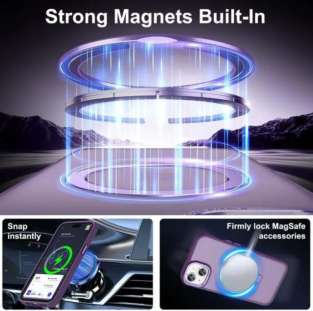 ![Alt view image 6 of 7 - JAYSUING Magnetic for iPhone 15 Case with Ring Stand, [10 FT Drop Protection] [Velvety Touch] Slim Translucent Matte Back Shockproof Phone Case for iPhone 15 6.1'', Dark Purple](https://c1.neweggimages.com/productimage/nb640/C47HD2603080J31551B.jpg)