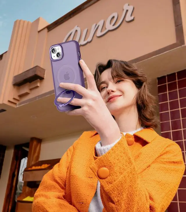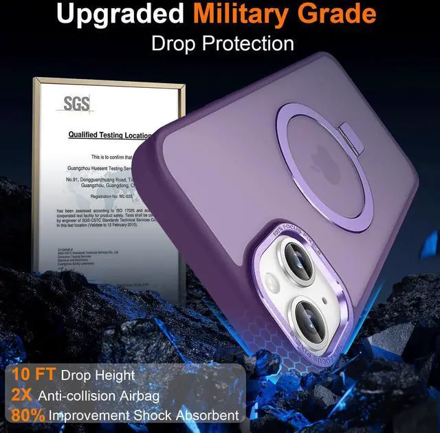 ![Alt view image 2 of 7 - JAYSUING Magnetic for iPhone 15 Case with Ring Stand, [10 FT Drop Protection] [Velvety Touch] Slim Translucent Matte Back Shockproof Phone Case for iPhone 15 6.1'', Dark Purple](https://c1.neweggimages.com/productimage/nb640/C47HD2603080J30X7DC.jpg)