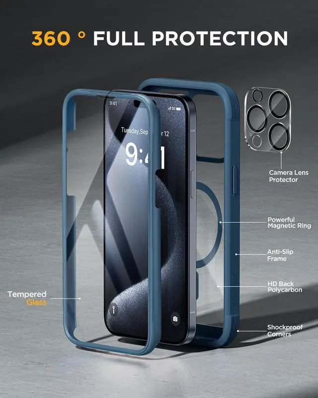 ![Main image of JAYSUING Magnetic for iPhone 15 Pro Max Case 6.7'' [Compatible with Magsafe] Full-Body Drop Proof Bumper Phone Case for iPhone 15 Pro Max with Built-in 9H Tempered Glass Screen Protector,Blue](https://c1.neweggimages.com/productimage/nb640/C47HD2603080C73JQDB.jpg)