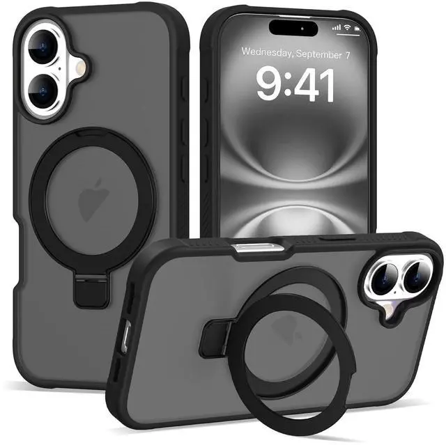 ![Alt view image 7 of 7 - JAYSUING for iPhone 16 Case with Invisible Ring Stand [Military Drop Protection] [Compatible with Mag-Safe] Matte Translucent Back Anti-Slip Shockproof Phone Cover 6.1 Inch 2024-Black](https://c1.neweggimages.com/productimage/nb640/C47HD2603080JCDU515.jpg)