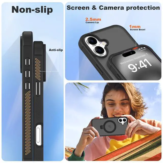 ![Alt view image 5 of 7 - JAYSUING for iPhone 16 Case with Invisible Ring Stand [Military Drop Protection] [Compatible with Mag-Safe] Matte Translucent Back Anti-Slip Shockproof Phone Cover 6.1 Inch 2024-Black](https://c1.neweggimages.com/productimage/nb640/C47HD2603080JCDR0AA.jpg)