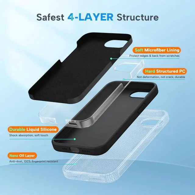 • [Durable Liquid Silicone Case]Liquid silicone rubber,surface layer smooth. Upgraded Thickness:2.8mm.(Normal just 1.8 mm).Four-layer structure design anti-fingerprint,scratch-resistant performance, drop protection