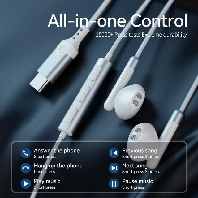 USB C Earphones for Samsung Galaxy S26 S25 Ultra S24 S23 S22 S21 S20 A53 A54 Type C Headphones with Microphone & Volume Control, in-Ear Earbuds Wired Earphones for iPhone 17 16, iPad Pro 2022 iPad Air 5, Pixel 7