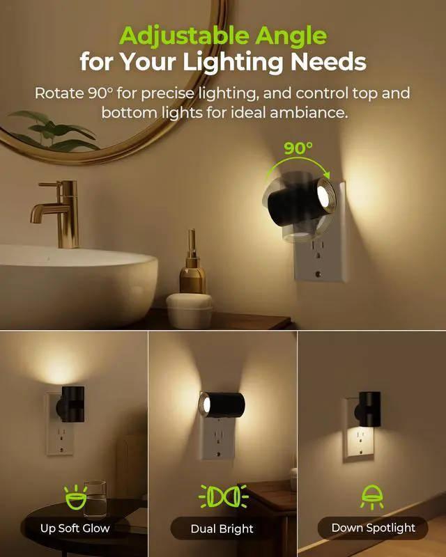 This dimmable night light features 5 brightness levels with a short press and stepless dimming from 1 to 100 lm with a long press. It also can offer flexibility with both single-direction or dual-direction lighting options, along with a 90° rotating feature for multi-angle illumination