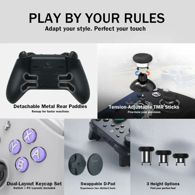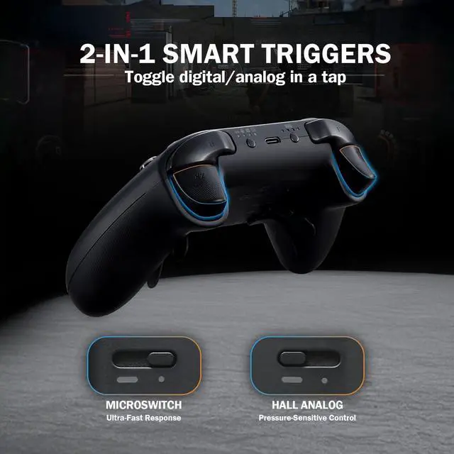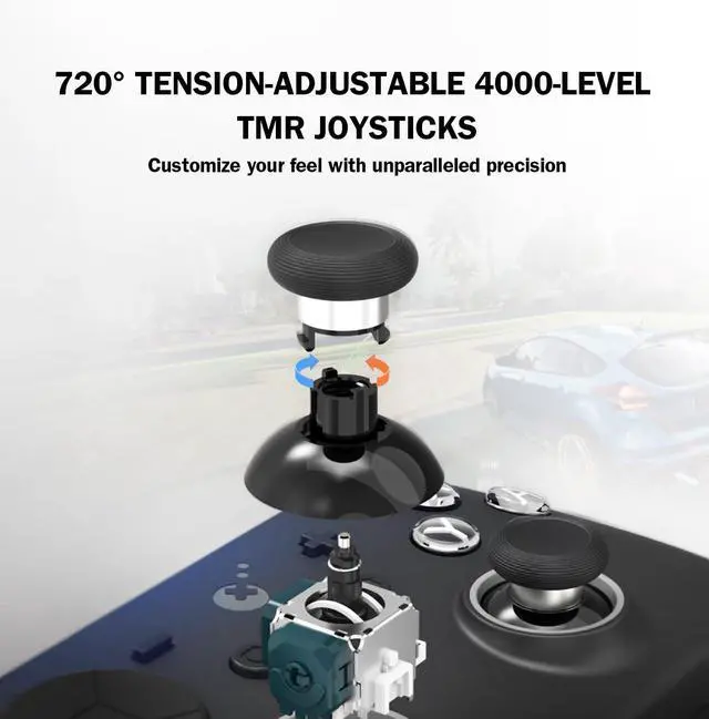 | Additional Features | APG macro function, Anti-drift and anti-snapback joysticks, RGB lighting effects on joysticks ring, Switch 1/2 wake-up, Tension-Adjustable TMR joysticks |