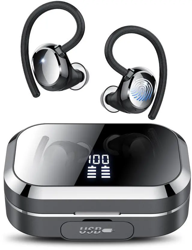 Bluetooth Headphones Wireless Earbuds 120hrs Playtime Wireless Charging Case Digital Display, Ear Buds with Earhook,IPX7 Waterproof, Deep Bass 2.0,Over-Ear Earphones for Sport Running