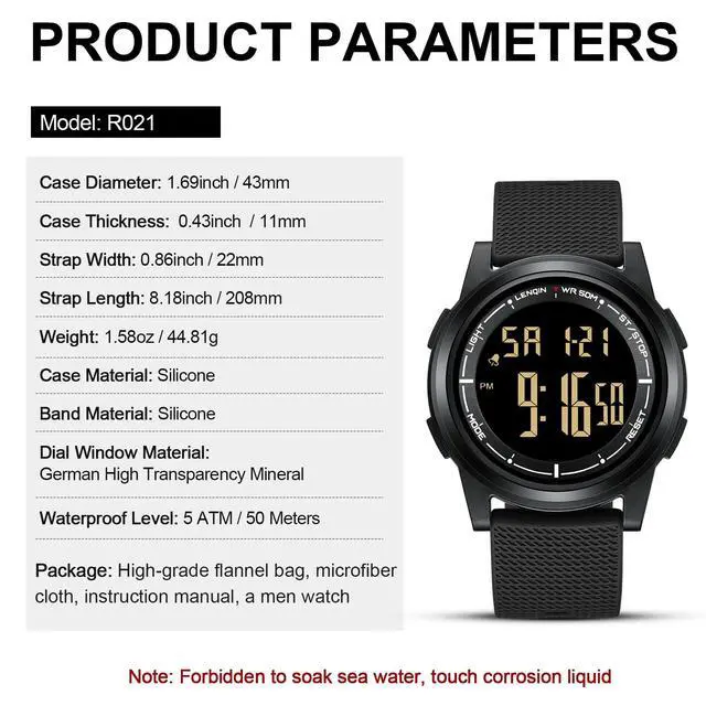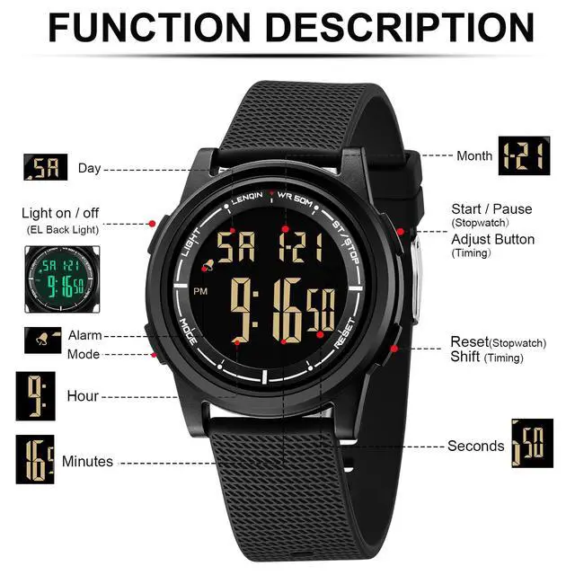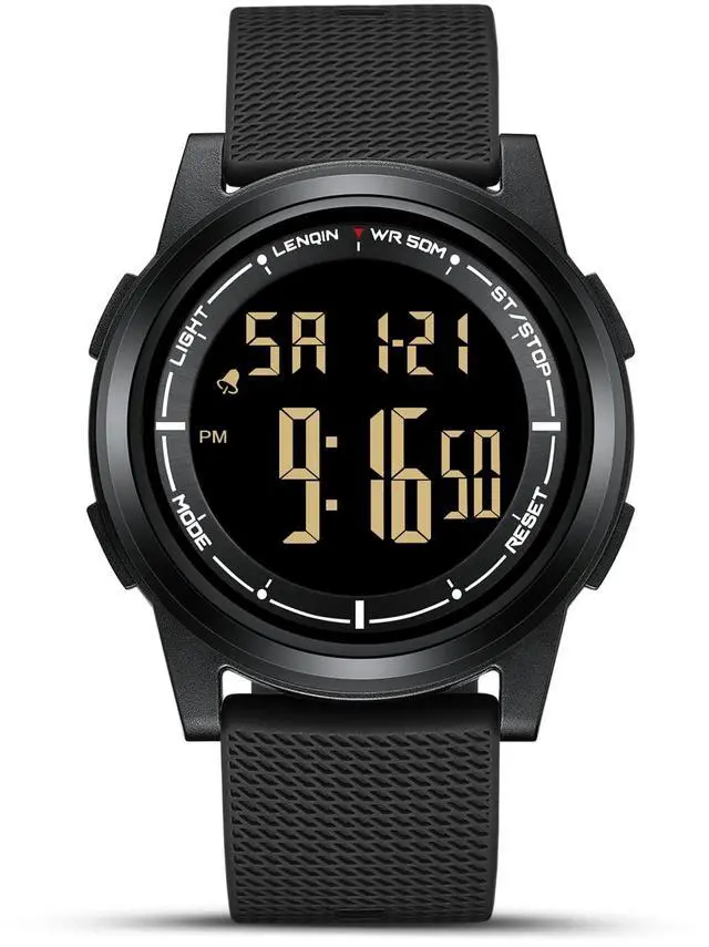 JAYSUING Mens Digital Watch Ultra Thin Minimalist Sports Waterproof Outdoor LED Screen Large Face Wrist Watches for Men with Back Light Alarm Date Stopwatch