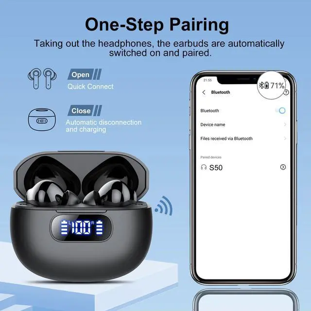 Package Contents: You will receive Bluetooth earbuds*2, charging case*1, Type-C charging cable*1, earbuds*6 (S/M/L), user manual*1.