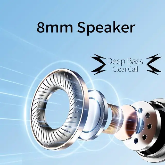 JAYSUING Wireless Earbuds in-Ear Headphones Bluetooth 5.3 with Built-in Mics Deep Bass Clear Call Ultralight Headsets Up To 60H Play Time for Studying Workout Gaming Blue