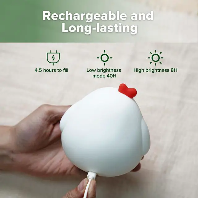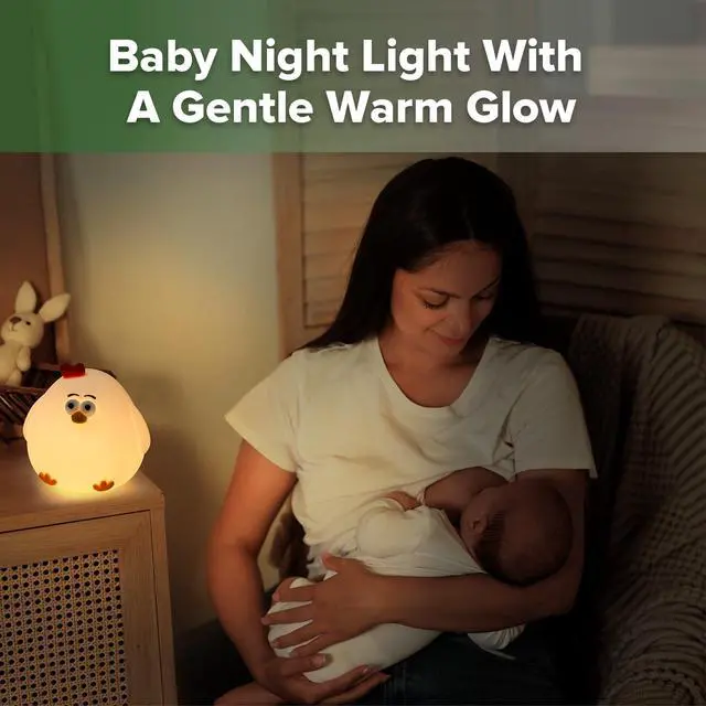 JAYSUING Baby Night Light | USB Rechargeable LED Funny Animal Cute Chicken Squishy Lamp for Kids,Silicone Nursery Nightlight for Breastfeeding
