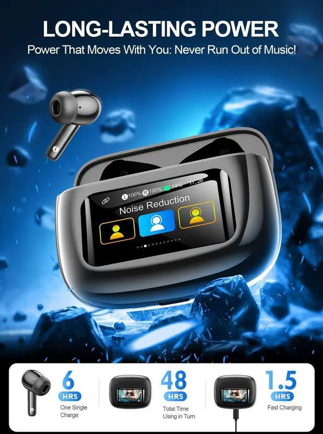 Extended 48-Hour Total Playtime: Enjoy all-day power. The earbuds offer 8 hours of use, and the portable charging